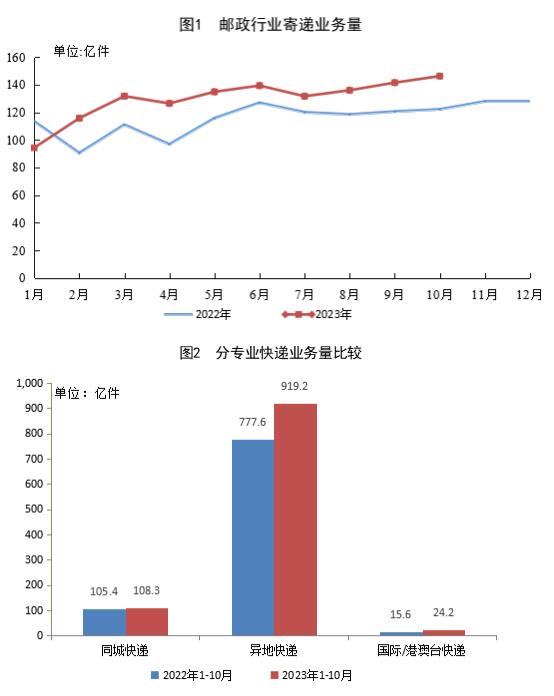 1-10月郵政行業(yè)寄遞業(yè)務(wù)量累計完成1297.2億件