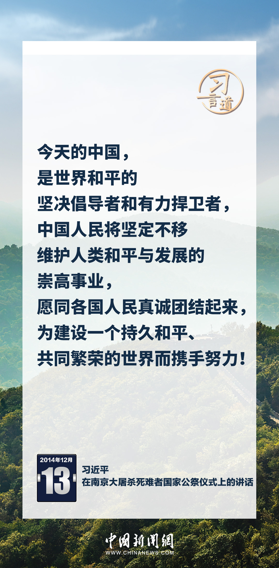 前事不忘,后事之師。2023年12月13日是第十個(gè)南京大屠殺死難者國家公祭日。讓我們一起重溫習(xí)近平總書記的重要講話,緬懷逝者,堅(jiān)定維護(hù)和平的決心,以史為鑒,照亮未來前進(jìn)的道路。