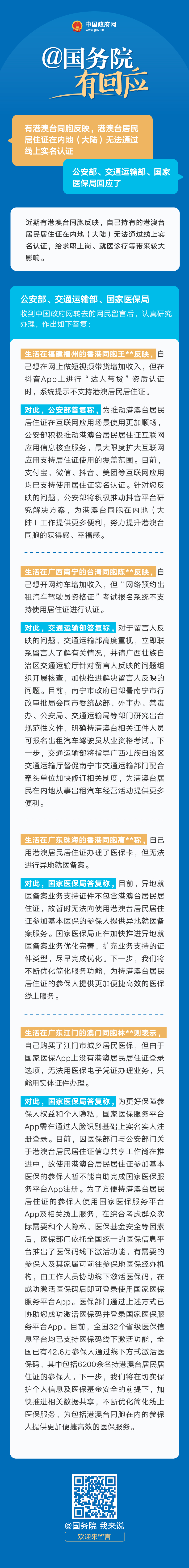 公安部、交通運輸部、國家醫(yī)保局答網(wǎng)民關(guān)于“加快推進港澳臺居民居住證線上實名認(rèn)證”的留言