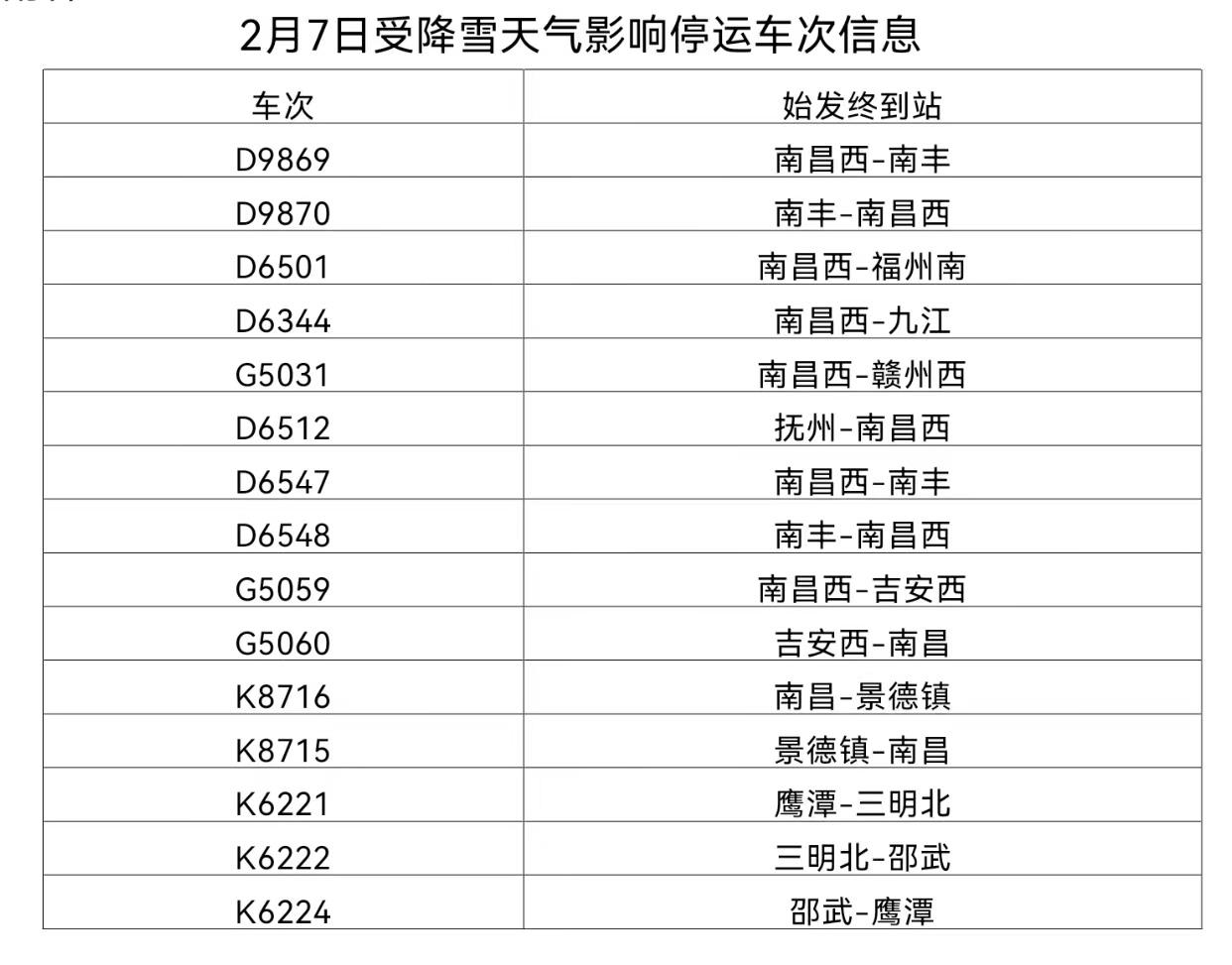 受雨雪冰凍影響 今日國(guó)鐵南昌路局部分旅客列車(chē)停運(yùn)