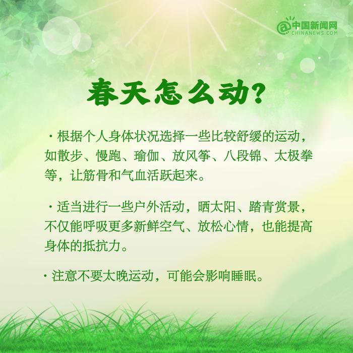 春天是萬物復(fù)蘇的季節(jié),也是調(diào)養(yǎng)身體的好時節(jié)。①每天保證6~8小時的睡眠,避免熬夜;②適當(dāng)進(jìn)行一些戶外活動,曬太陽、踏青賞景等;③不過早減衣,穿衣注意下厚上?。虎茏⒁馇宓嬍常喑允卟?,多喝水……春季養(yǎng)生要注意什么?詳戳↓↓