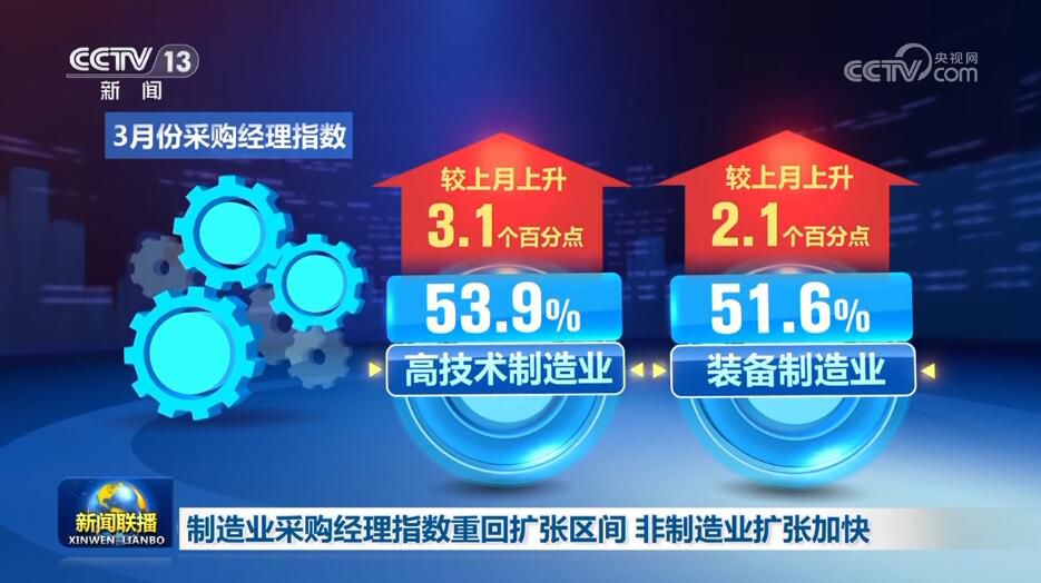 央視網(wǎng)消息:3月31日,《新聞聯(lián)播》報道了3月份中國采購經(jīng)理指數(shù)、各地重大工程建設(shè),以及生態(tài)保護、春耕等領(lǐng)域取得的新成績、新成果,各行各業(yè)奮力拼搏,匯聚成向上的蓬勃力量,繪就出中國經(jīng)濟萬千氣象。