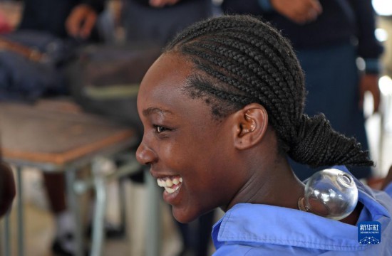 4月3日,在納米比亞溫得和克的伊曼紐爾·謝菲迪中學(xué)課堂上,一名學(xué)生體驗(yàn)艾灸。新華社發(fā)(穆薩·卡薩克攝)