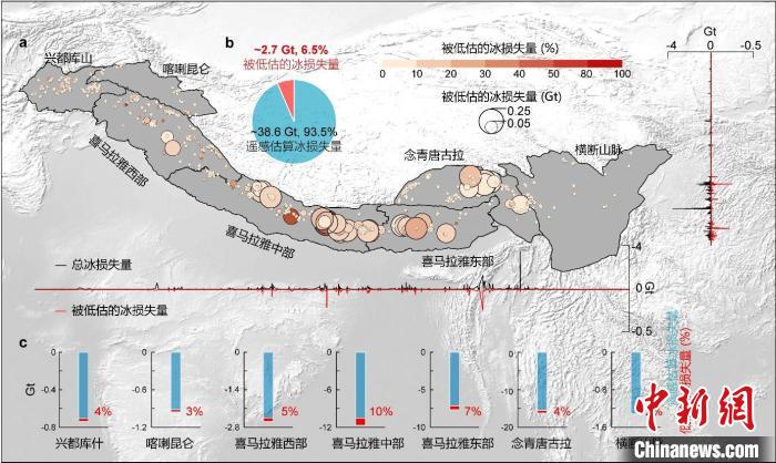 2000~2020年喜馬拉雅水下冰質量損失低估量?!≈锌圃呵嗖馗咴?供圖