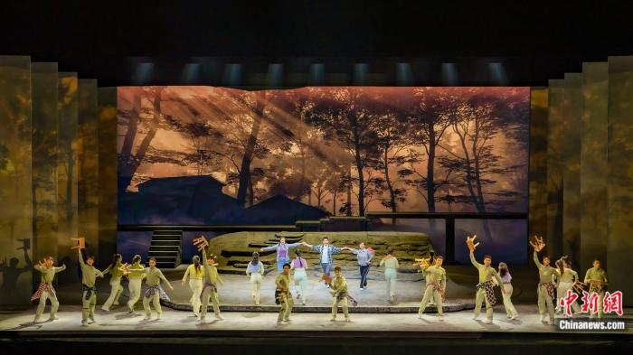 “秀山麗水給我們提供了豐富的創(chuàng)作素材和視覺沖擊,舞臺上我們在尾聲進行了再創(chuàng)作,把綠水青山帶來的視覺震撼進行了戲劇表達。我們不僅要呈現(xiàn)自然界的好風光,更要呈現(xiàn)人們心靈的綠水青山?!睂а輻钚∏嗾f。