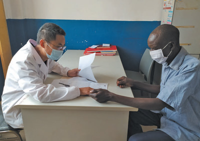 中國(guó)醫(yī)療隊(duì)醫(yī)生在中烏友好醫(yī)院出診。