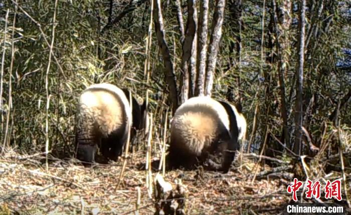 中新網雅安4月12日電 (劉剛 李夢琴 萬喬石)4月12日,大熊貓國家公園四川雅安石棉片區(qū)通報稱,近日,工作人員在對野外安裝回收的紅外線相機影像資料進行整理時,發(fā)現(xiàn)了一段兩只野生大熊貓“結伴”出鏡的畫面。
