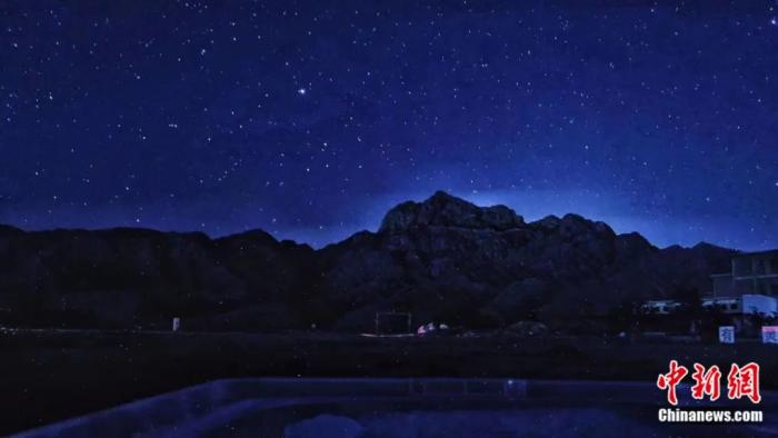 光暈下的賀蘭山。賀蘭縣委宣傳部 供圖