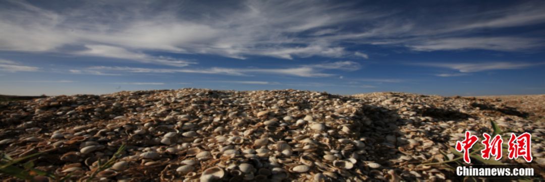 貝殼同含有鹽堿的泥沙凝結(jié)在一起,層層疊疊,千姿百態(tài),是迄今為止中國內(nèi)陸盆地發(fā)現(xiàn)的最大規(guī)模的古生物地層。
