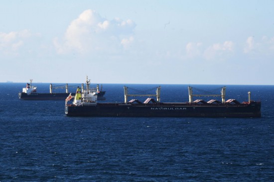 2022年8月6日,從烏克蘭出發(fā)的第二批運糧船抵達(dá)土耳其伊斯坦布爾的博斯普魯斯海峽黑海入??诟浇#ㄐ氯A社記者沙達(dá)提攝)