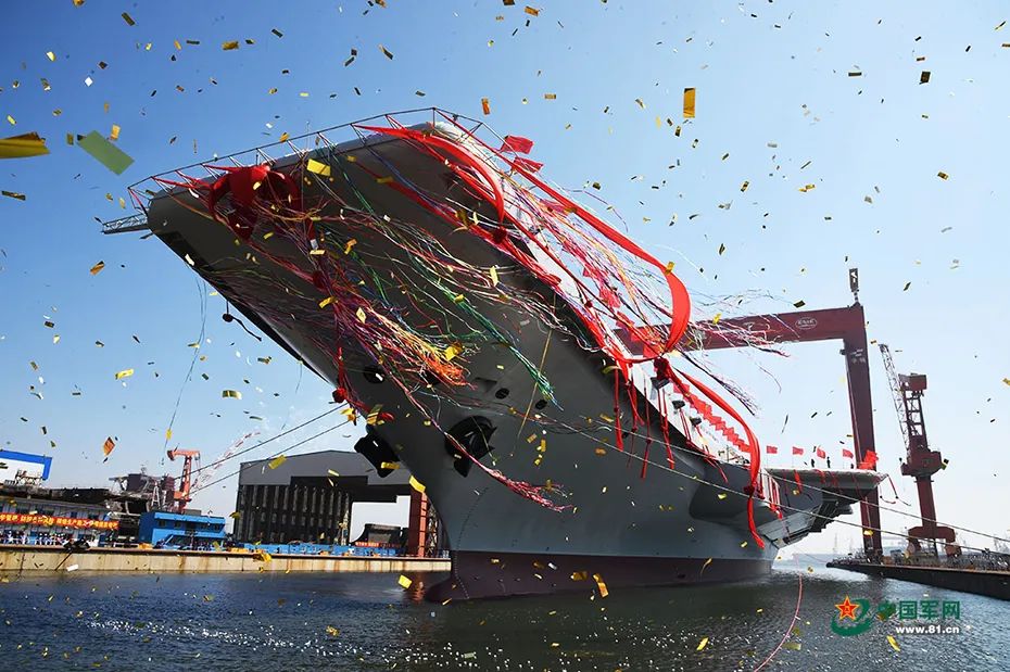 資料圖:中國第二艘航空母艦(中國首艘國產(chǎn)航母)下水儀式在中國船舶重工集團公司大連造船廠舉行。圖片來源:中國軍網(wǎng)