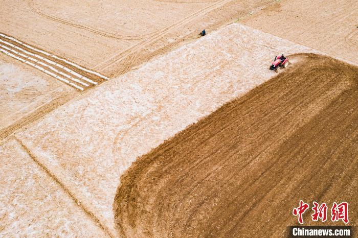 村民駕駛農(nóng)機(jī)犁地。 張文軍 攝