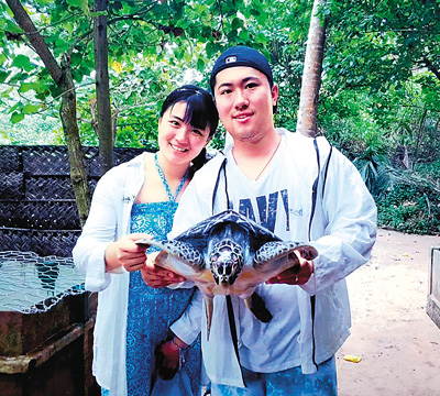 2018年,許振軒與李丹宜正在江蘇南京讀大學(xué)。一次偶然的機(jī)會(huì),兩人到斯里蘭卡體驗(yàn)了一場(chǎng)特殊的“海龜保育義工之旅”。許振軒一直非常喜歡去海洋館,宿舍還有好幾個(gè)烏龜?shù)?。“看著它們從孵化到慢慢成長(zhǎng),感覺(jué)非常奇妙。剛好一直關(guān)注的公眾號(hào)提供了研學(xué)機(jī)會(huì),我從眾多項(xiàng)目里選擇了‘海龜保育’?!痹S振軒的決定也影響了喜愛(ài)小動(dòng)物的女朋友李丹宜。