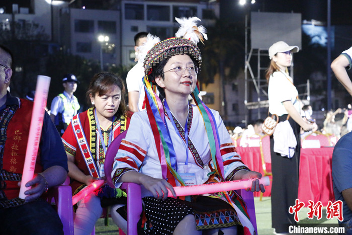 圖為4月22日晚,海南省臺(tái)聯(lián)副會(huì)長(zhǎng)劉芳穎身著臺(tái)灣少數(shù)民族服飾出席在樂(lè)東舉行的“三月三”開(kāi)幕活動(dòng)。 中新社記者 朱賀 攝