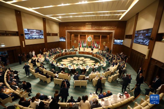 這是5月7日在埃及開羅拍攝的阿拉伯國家聯(lián)盟外長級特別會議現(xiàn)場。新華社發(fā)(艾哈邁德·戈馬 攝)