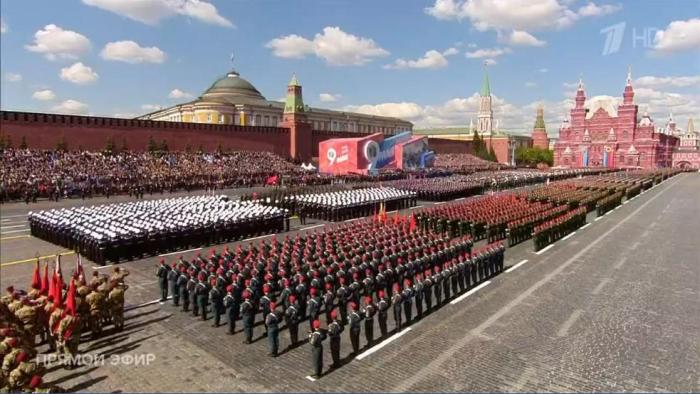 莫斯科時間10時整(北京時間下午3時),克里姆林宮鐘聲響起,宣告紅場勝利日閱兵開始。