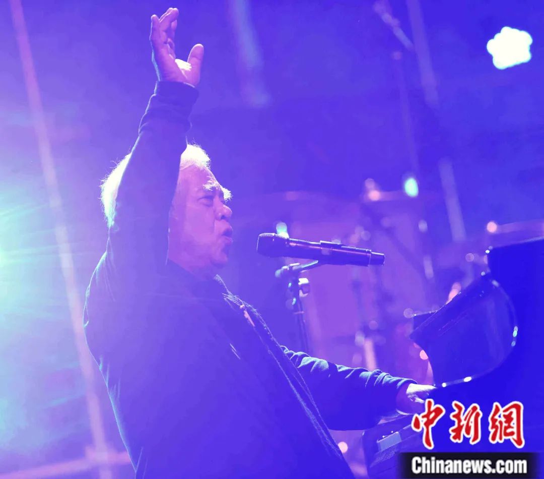 2015年6月,“民歌40:再唱一段思想起”演唱會在臺北小巨蛋舉行。包括齊豫、李宗盛、潘越云在內的幾十位知名歌手齊聚一堂,共同紀念臺灣民歌運動興起40周年。圖為胡德夫等人合唱《龍的傳人》。鄭巧 攝