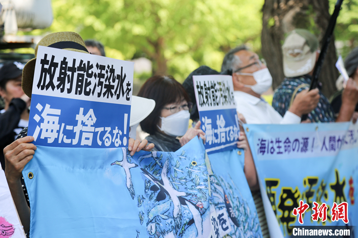 5月16日,日本民眾在眾議院第二議員會館前舉行集會,表達對日本政府和東京電力公司持續(xù)強推福島核污染水排海計劃的強烈反對。 中新社記者 朱晨曦 攝