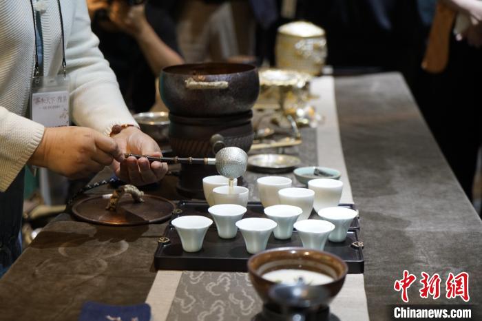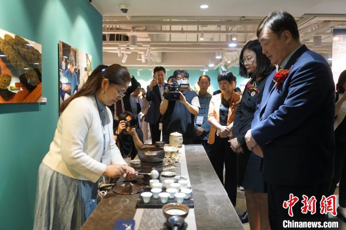 當(dāng)?shù)貢r(shí)間23日,“茶和天下·雅集”活動(dòng)開(kāi)幕式暨茶韻山水——“綠水青山就是金山銀山”浙江省文旅圖片展在首爾中國(guó)文化中心舉行。圖為長(zhǎng)興紫筍茶體驗(yàn)。中新社記者 劉旭 攝