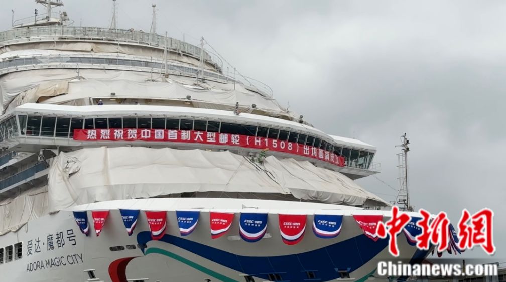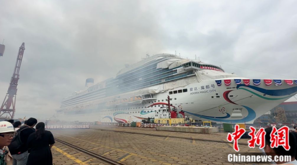 看,這艘身系“敦煌飛天彩帶”楚楚動(dòng)人的我國首艘國產(chǎn)大型郵輪“愛達(dá)·魔都”號(hào),今日盛裝出塢!
