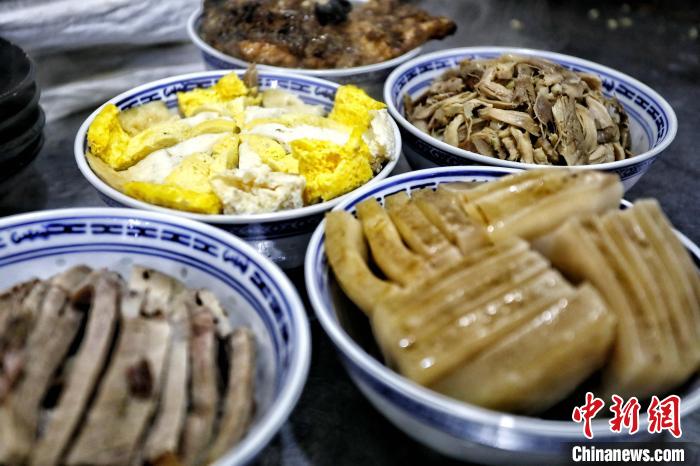“澆頭決定了菜品味道?!庇诔窀嬖V記者,澆頭多以肥雞、肥鴨、豬肘為主料,輔以各種佐料,醬油、醋、木耳、香菜等搭配融合,熱氣騰騰的澆頭就出鍋了,“清澈見(jiàn)底,味鮮而醇,既可做湯菜,又能做提鮮的調(diào)味料”。