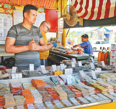 古巴首都哈瓦那一個市場內(nèi),商販正在等待顧客前來購買調(diào)料。