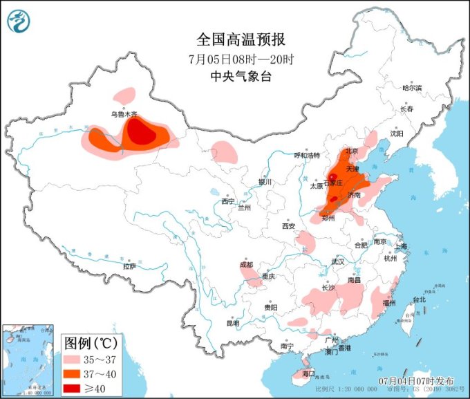 高溫方面,受降雨影響華北大部高溫天氣得到短暫緩解,明天起(5日)京津冀及黃淮等地高溫將再度發(fā)展加強(qiáng),河北大部、北京、天津、山東北部、河南中北部等地日最高氣溫可達(dá)37~39℃,部分地區(qū)超過(guò)40℃。請(qǐng)公眾注意做好防曬降溫措施,盡量減少外出和戶(hù)外活動(dòng)時(shí)間,及時(shí)補(bǔ)充水分,警惕高溫引發(fā)的中暑。
