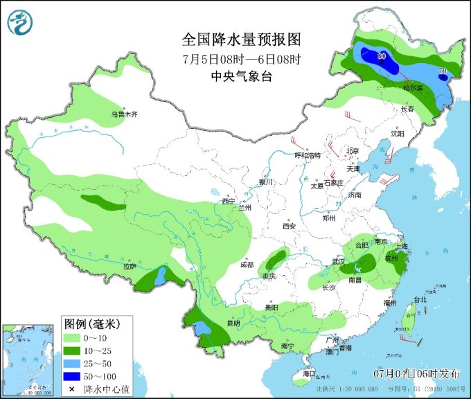 中新網(wǎng)7月4日電 據(jù)中央氣象臺(tái)網(wǎng)站消息,中央氣象臺(tái)今晨繼續(xù)發(fā)布暴雨藍(lán)色預(yù)警:預(yù)計(jì)今明兩天,東北地區(qū)及內(nèi)蒙古東北部將成強(qiáng)降雨主陣地,其中今天白天至夜間,內(nèi)蒙古東北部、黑龍江西南部、吉林、遼寧中東部等地部分地區(qū)有大到暴雨,遼寧東北部等局地有大暴雨(100~120毫米);上述部分地區(qū)伴有短時(shí)強(qiáng)降水(最大小時(shí)降雨量20~50毫米,局地可超過(guò)60毫米),局地有雷暴大風(fēng)等強(qiáng)對(duì)流天氣。明天,內(nèi)蒙古東北部、黑龍江大部、吉林北部有中到大雨,局地暴雨。受強(qiáng)降雨影響,內(nèi)蒙古東北部、東北部分地區(qū)等地有暴雨災(zāi)害中高風(fēng)險(xiǎn),關(guān)注局地可能發(fā)生的山洪、地質(zhì)災(zāi)害和城鄉(xiāng)積澇,并防范強(qiáng)對(duì)流天氣的危害。