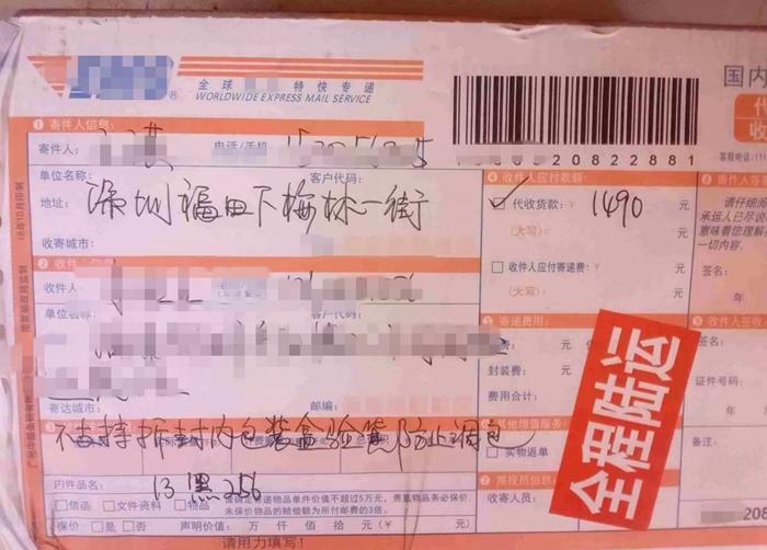 不過有消費(fèi)者反映,很多代收貨款快遞并不支持先驗(yàn)貨再簽收。記者在黑貓投訴上也發(fā)現(xiàn)部分快遞單標(biāo)注“不支持拆封內(nèi)包裝盒驗(yàn)貨防止掉包”。而這也在客觀上讓出現(xiàn)“代收貨款與貨物價(jià)格不符”的情況,成為可能。