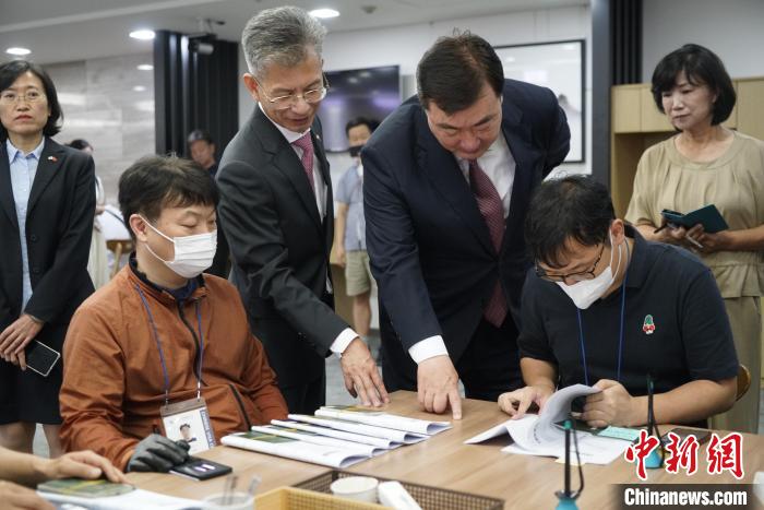 當?shù)貢r間7日,中國駐韓國大使邢海明赴首爾中國簽證申請服務(wù)中心調(diào)研。圖為邢海明(左一)考察中心。中新社記者 劉旭 攝