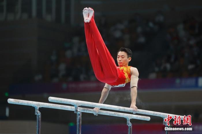 資料圖:第十四屆全運(yùn)會(huì)男子雙杠決賽中,四川隊(duì)選手鄒敬園奪冠。中新社記者 蔣啟明 攝