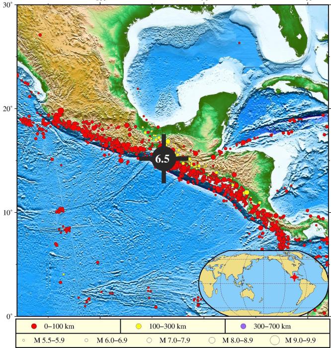 中新網(wǎng)7月14日電 據(jù)中國自然資源部海嘯預警中心消息,2023年07月14日17時29分(北京時間),墨西哥恰帕斯州沿岸近海海域(15.18°N,93.86°W)發(fā)生6.5級地震,震源深度為15千米。