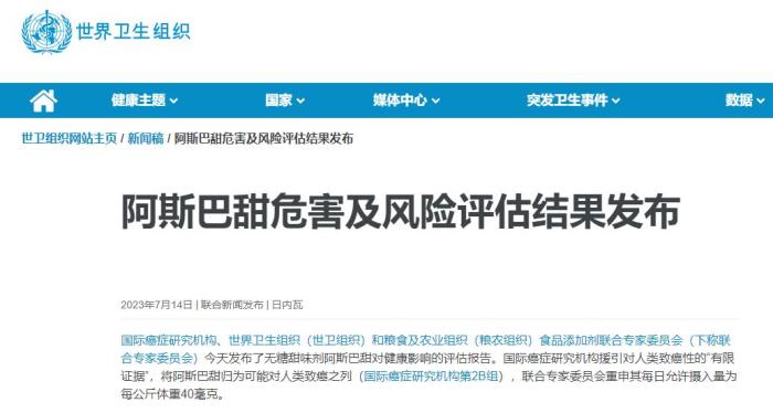 14日晚,國家食品安全風(fēng)險(xiǎn)評估中心網(wǎng)站發(fā)布《如何看待有關(guān)國際機(jī)構(gòu)發(fā)布的阿斯巴甜評估結(jié)果》。