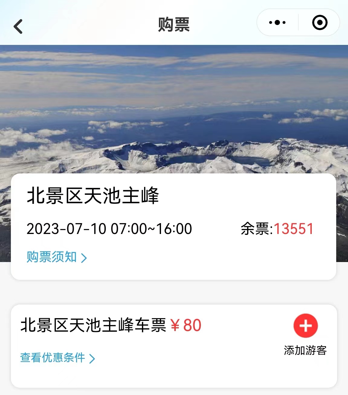 吉林長(zhǎng)白山北景區(qū)的組合票。 截圖自“長(zhǎng)白山”微信公眾號(hào)。