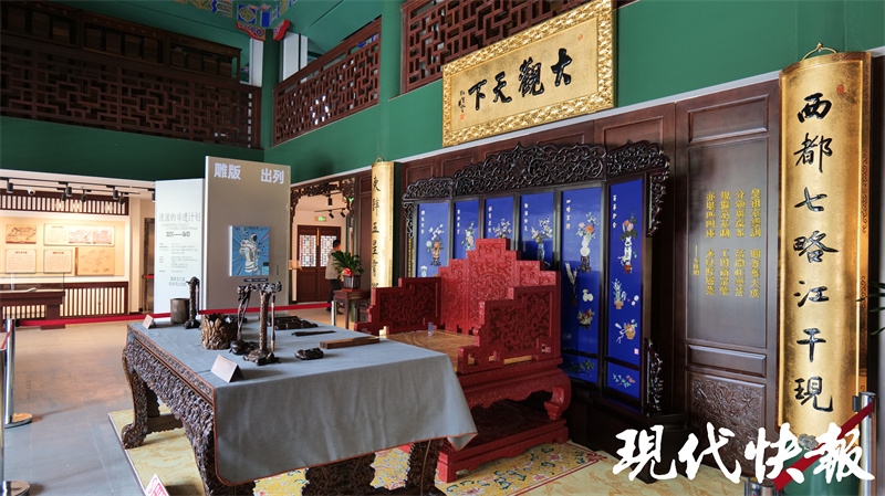 館內(nèi)鴛鴦廳為“何以狀元”主題展廳,通過實(shí)物展品再現(xiàn)古代科舉流程,介紹了一個(gè)狀元是如何誕生的。現(xiàn)代快報(bào)記者了解到,2001年,在整修鴛鴦廳時(shí),曾在上方發(fā)現(xiàn)一方被后人所加“吊頂”遮住的匾。潘世恩高中狀元后,為官五十余年,歷經(jīng)四朝,深得皇帝恩寵,被譽(yù)為“三百年間第一福氣之人”。每逢大壽,皇帝都會(huì)親賜御匾。后經(jīng)專家考證,該匾即是道光皇帝于潘世恩六十大壽之時(shí)御筆賞賜的黑底盤龍金書方匾。