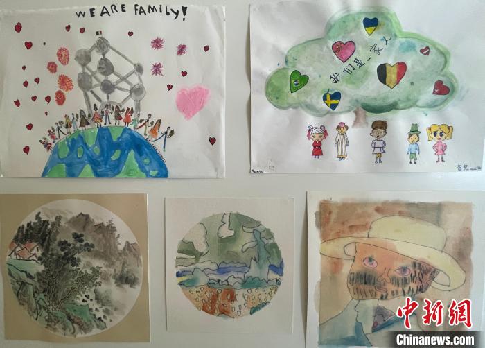從北京天安門到比利時(shí)地標(biāo)建筑原子球塔,從中國(guó)大熊貓到梵高畫(huà)像,孩子們的筆觸雖稚嫩,卻處處傳遞中西方文化的交融交匯。