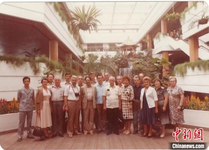 1983年10月,應(yīng)中國人民對(duì)外友好協(xié)會(huì)和中蘇友好協(xié)會(huì)邀請(qǐng),時(shí)任蘇中友好協(xié)會(huì)主席謝爾蓋·列昂尼多維奇·齊赫文斯基率代表團(tuán)前往中國。圖為代表團(tuán)成員在廣州白天鵝賓館合影。圖片來源:庫利科娃個(gè)人搜集的檔案資料