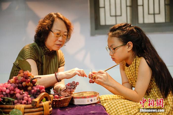 祖孫二人正在做“葡萄?!?。中新網(wǎng)記者 翟璐 攝