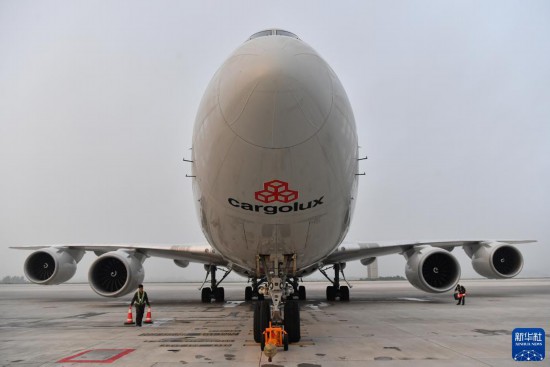 8月1日,在中國鄭州新鄭國際機場,一架盧森堡貨航貨機裝貨完畢準(zhǔn)備起飛。新華社記者 李嘉南 攝