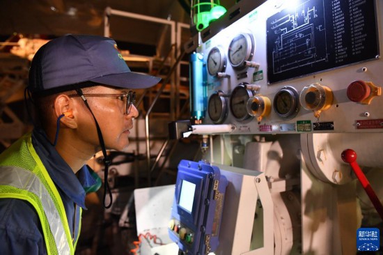 8月1日,在中國鄭州新鄭國際機場,盧森堡貨航鄭州站操作主管陳鵬超核對裝載信息。新華社記者 李嘉南 攝