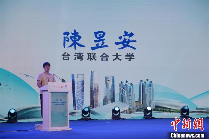 6日晚,來(lái)自臺(tái)灣聯(lián)合大學(xué)的學(xué)生陳昱安作為臺(tái)灣學(xué)生代表發(fā)言。主辦方供圖