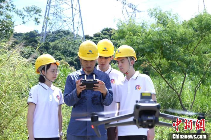 在南方電網(wǎng)公司深圳供電局實(shí)習(xí)的港澳臺(tái)大學(xué)生學(xué)習(xí)開展無人機(jī)巡視作業(yè)。(南方電網(wǎng)供圖)