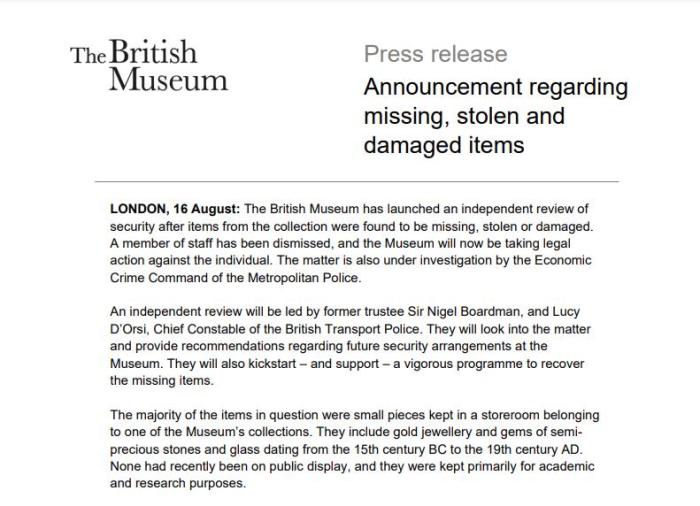 奧斯本稱,“對于所有熱愛大英博物館的人來說,這是悲傷的一天,但我們決心糾正錯誤,并利用這次經(jīng)驗來建設一個更強大的博物館?!?/p>