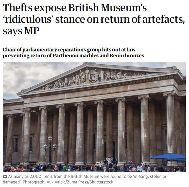 據(jù)報道,英國議會非洲賠償問題跨黨派小組主席貝爾·里貝羅·阿迪認(rèn)為,1963年制定的禁止歸還帕特農(nóng)神廟大理石和貝寧青銅器等物品的法律應(yīng)該被修改。