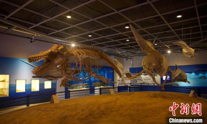 圖為蔚山長(zhǎng)生浦鯨魚博物館展出的實(shí)物鯨魚骨骼。 中新社發(fā)王悅攝