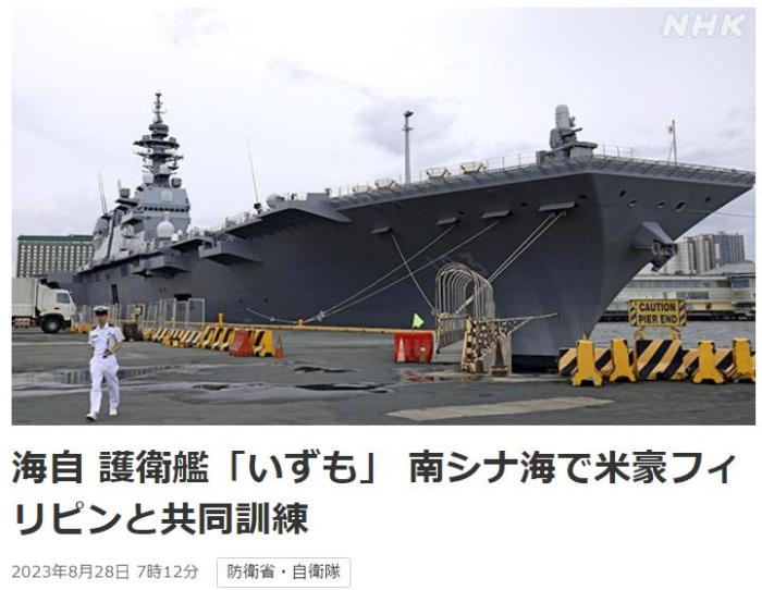 中新網(wǎng)8月28日電 綜合日媒報道,27日,日本海上自衛(wèi)隊公開了準(zhǔn)航母“出云”號停靠菲律賓首都馬尼拉的畫面,并稱該艦在24日曾與美國、澳大利亞和菲律賓三國軍艦進(jìn)行了聯(lián)合演習(xí)。
