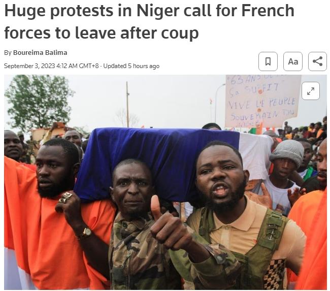 近來,尼日爾國內(nèi)的反法情緒日漸高漲。尼日爾軍政府8月31日宣布,暫停各國非政府組織、國際組織和聯(lián)合國機構(gòu)在“軍事行動區(qū)”內(nèi)活動,并下令警察驅(qū)逐法國駐尼大使。