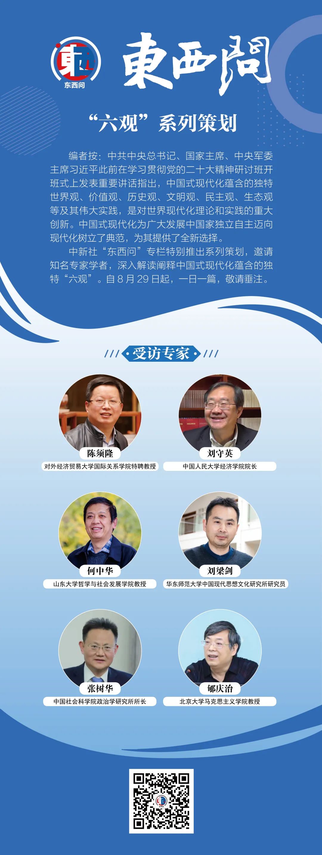 中新社“東西問”專欄特別推出系列策劃,邀請知名專家學者,深入解讀闡釋中國式現代化蘊含的獨特“六觀”?! ?月29日起播發(fā),一天一篇,敬請垂注。