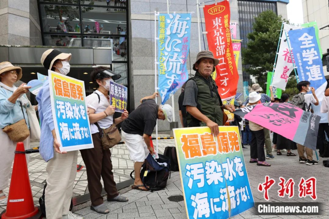 2023年8月24日,日本民眾在位于東京千代田區(qū)的東京電力公司總部附近舉行集會,強烈反對日本政府當天啟動福島核污染水排海作業(yè)。朱晨曦 攝