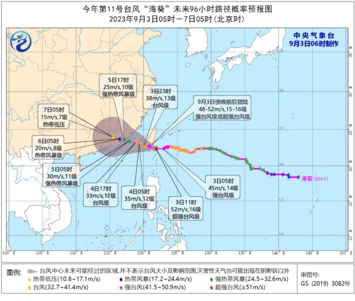 今年第11號臺風“??蔽磥?6小時路徑概率預(yù)報圖